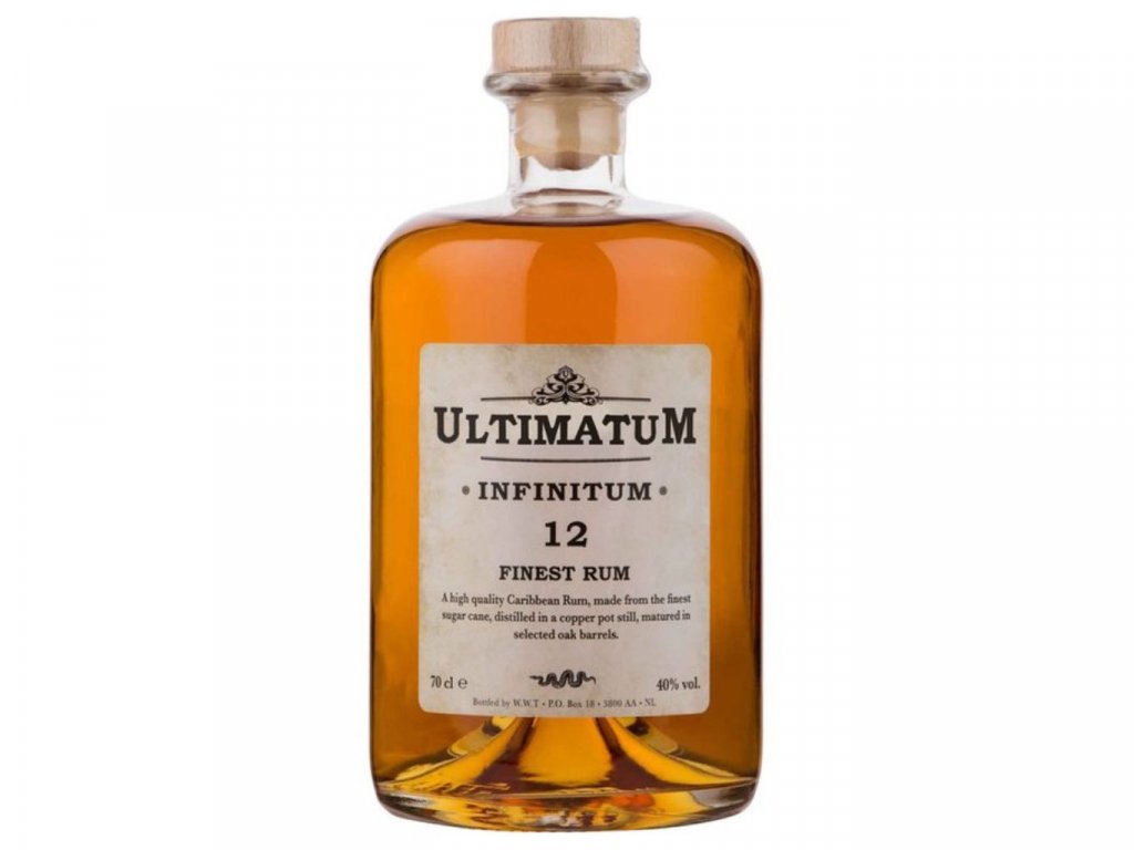 Rum ULTIMATUM INFINITUM 12 je zbarven do červeného zlata. Při otevření lahve vás uchvátí nejprve dokonalé aroma po vanilce, kávě, švestkách a tropických tónech. Rum má dlouhý závěr po tropickém ovoci a destiluje se v kotlích Pot Stills a Colom s cukrovou třtinou. Použité rumy pro výrobu jsou komplexní směsí různého stáří. Rum Ultimatum infinitum by neměl chybět ve vašem domácím baru.
